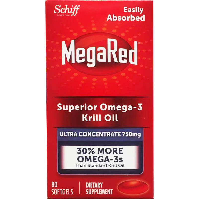 1件减13元包邮美国进口MegaRed脉拓南极磷虾油鱼油升级软胶囊750mg高含量80粒*2